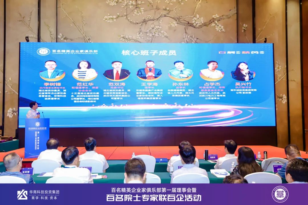 为进一步整合优质资源,加强企业间交流与合作,提升企业核心竞争力。2024年6月15日,由湖北华商科技投资集团有限公司主办,华商研究院承办的“百名精英企业家俱乐部第一届理事会暨‘百名院士专家联百企’活动”在武汉翠柳村客舍圆满举行。